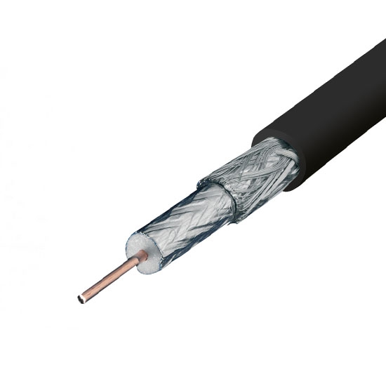 Zwarte 75 ohm KOKA799 kabel van Hirschmann voor TV en radio signalen. Per meter.