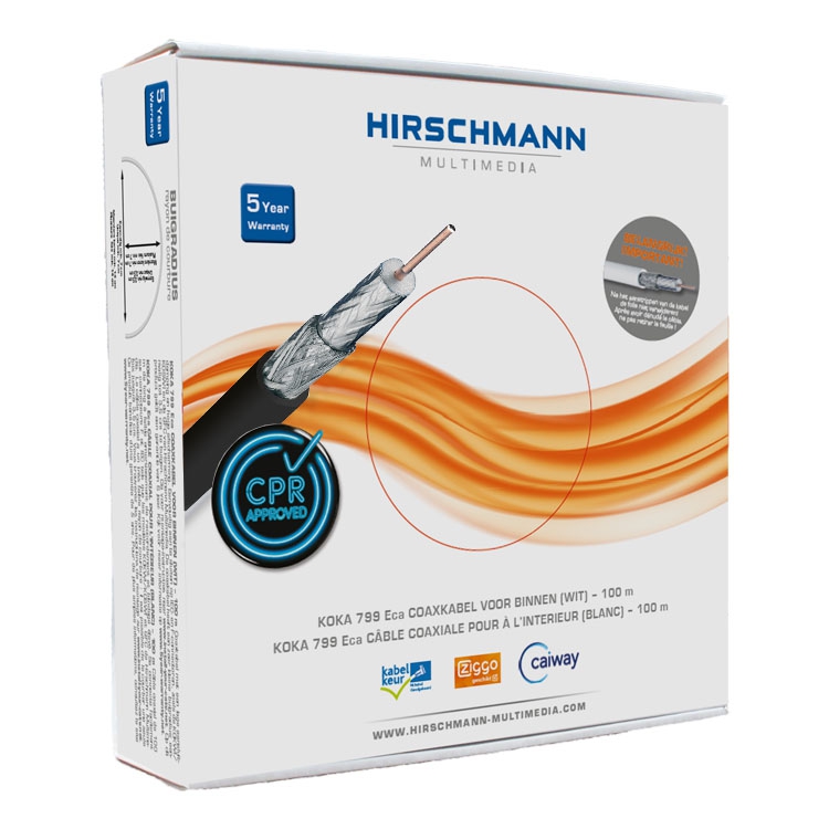 Coaxkabel met hoge kwaliteit en daardoor ook geschikt voor de professionele markt. Deze kabel is voorzien van KabelKeur en daardoor goedgekeurd door de meeste operators zoals Ziggo en KPN.